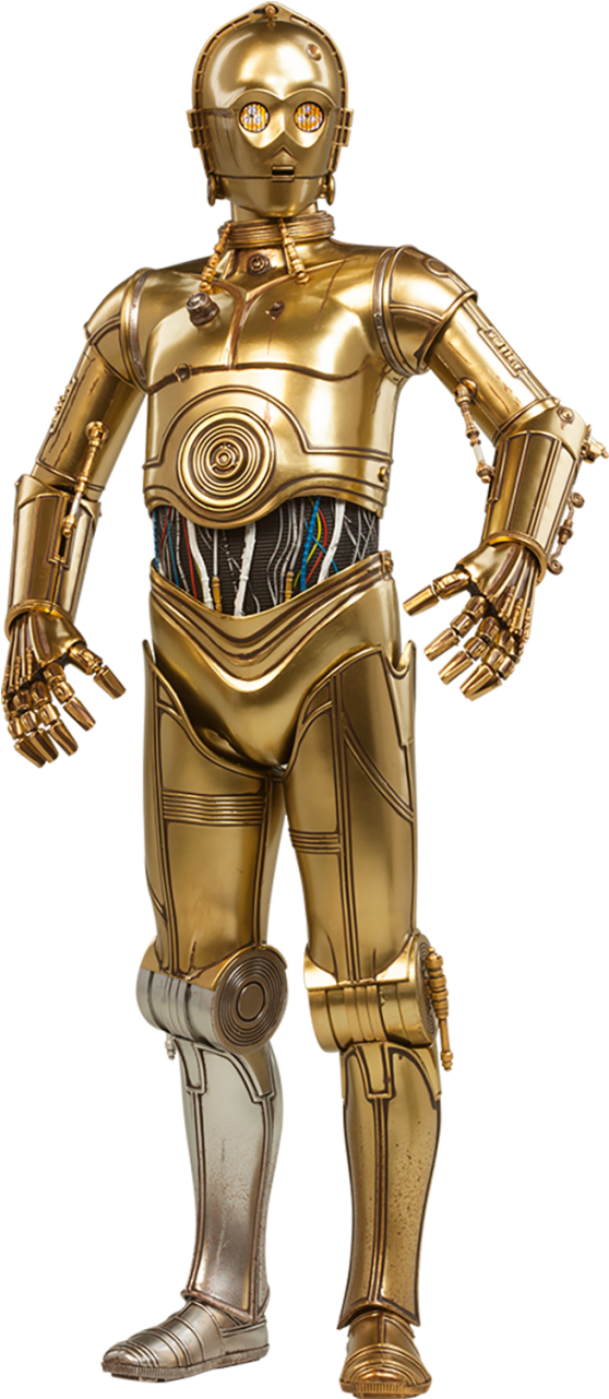 Descrição: C-3PO anseia por tempos mais pacíficos, mas seu serviço contínuo à Resistência - e seu conhecimento de mais de sete milhões de formas de comunicação - mantém o droide propenso a preocupações na linha de frente do conflito galáctico. Programado para etiqueta e protocolo, o Threepio foi construído por um jovem Anakin Skywalker e tem sido um companheiro constante do astromecânico R2-D2. Ao longo dos anos, ele se envolveu em alguns dos momentos mais marcantes da galáxia e em batalhas emocionantes. Desde a derrota do Império, C-3PO serviu Leia Organa, chefe de um anel de espionagem da Resistência que visa minar a Primeira Ordem.